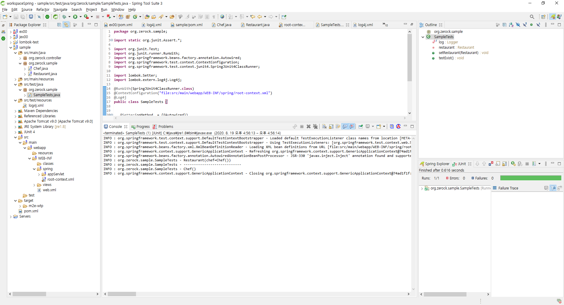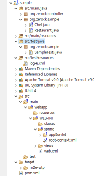 6. 테스트 src/test/java 안에 org.zerock.sample을 만들어 SampleTests.java 클래스를 생성한다.